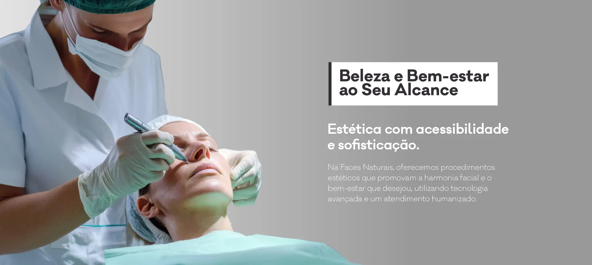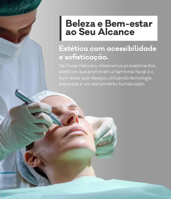 A Faces Naturais nasceu com a missão de transformar a estética facial de maneira segura, natural e personalizada para cada cliente. Utilizamos técnicas modernas e equipamentos de ponta para garantir um atendimento de alta qualidade e resultados sutis que valorizam a beleza individual.